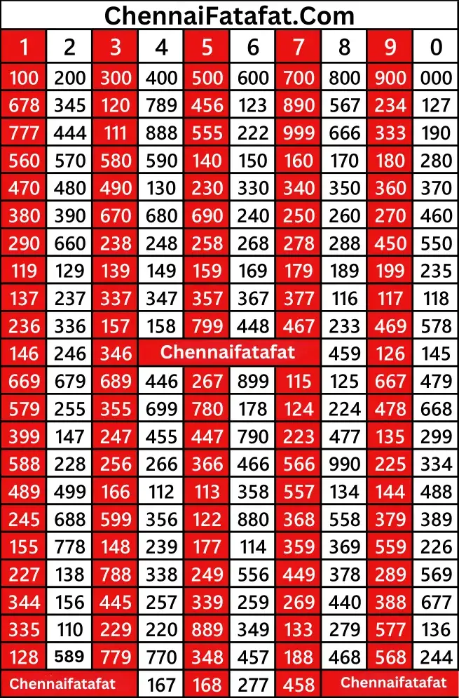CHENNAI FATAFAT Result Time Table List |